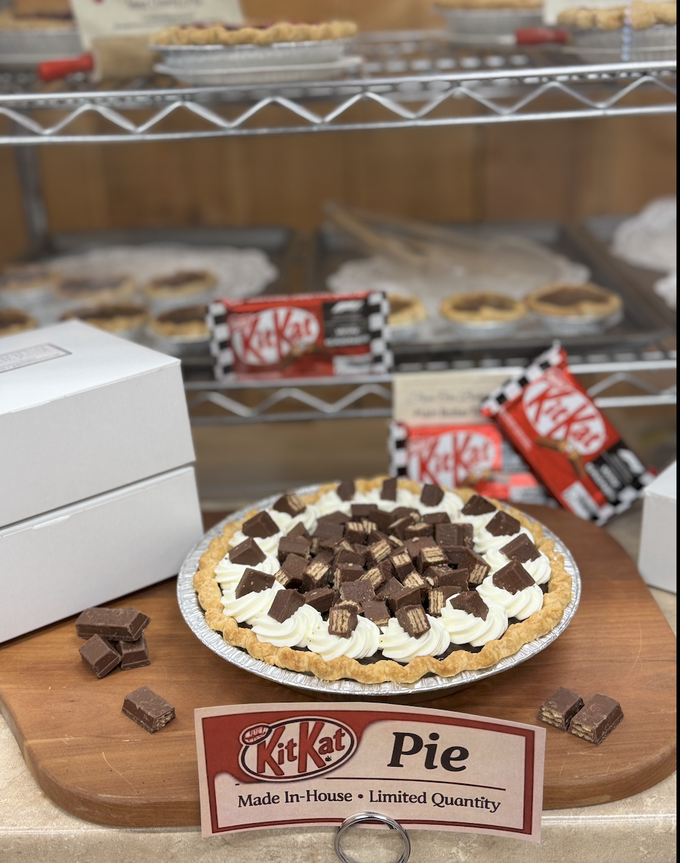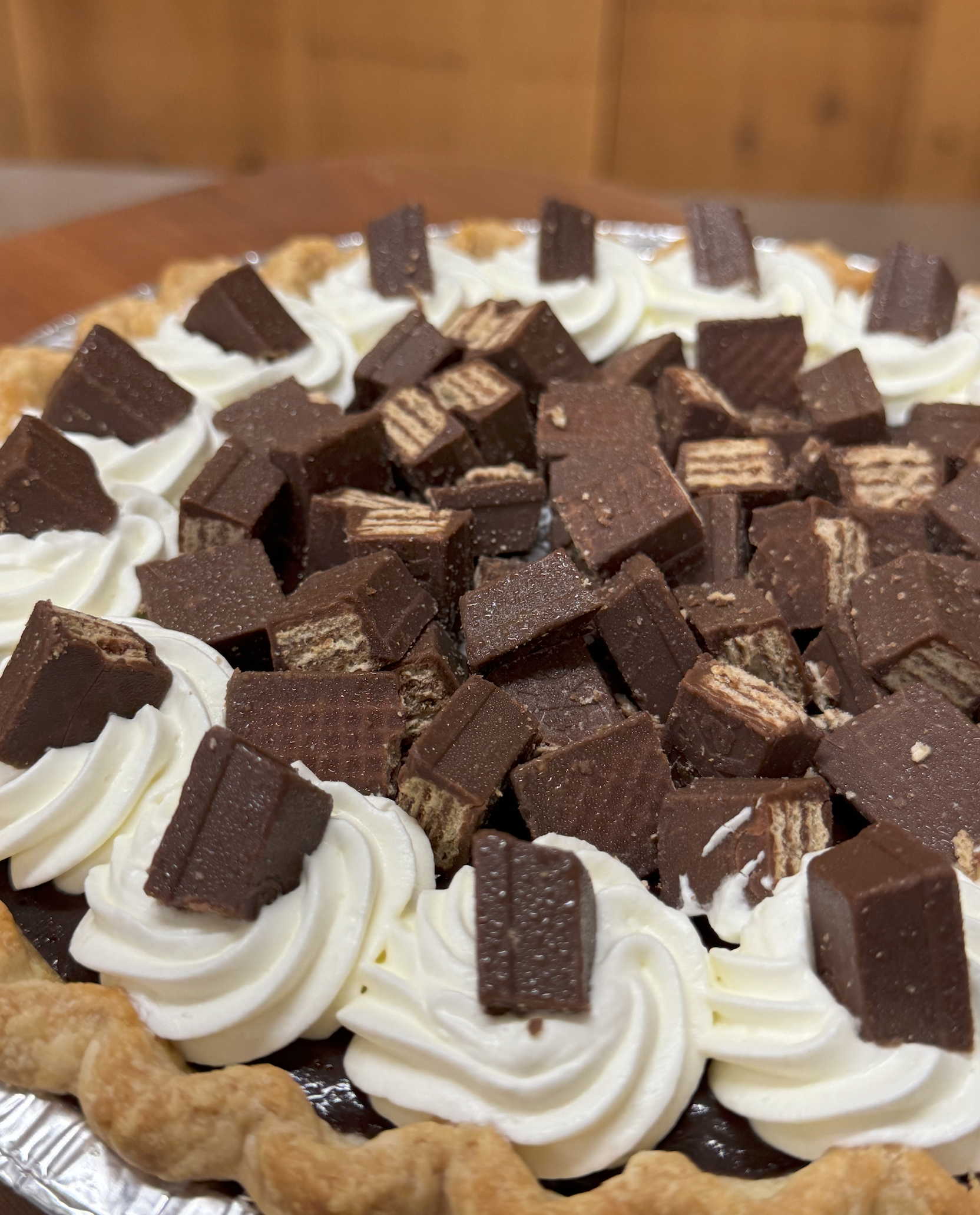 This one’s a showstopper. Our Kit Kat Pie starts with a rich, silky chocolate cream filling, topped with house-made stabilized whipped cream, and absolutely loaded with crunchy Kit Kat pieces. It’s creamy, chocolatey, a little nostalgic—and just indulgent enough to feel like a proper Mother’s Day treat.